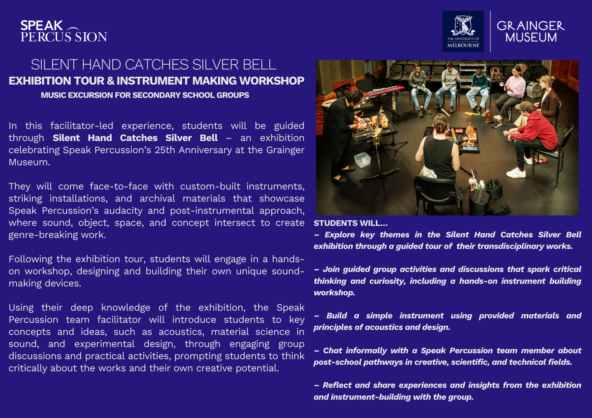 Exhibition tour & instrument making workshop for secondary school students – 2026